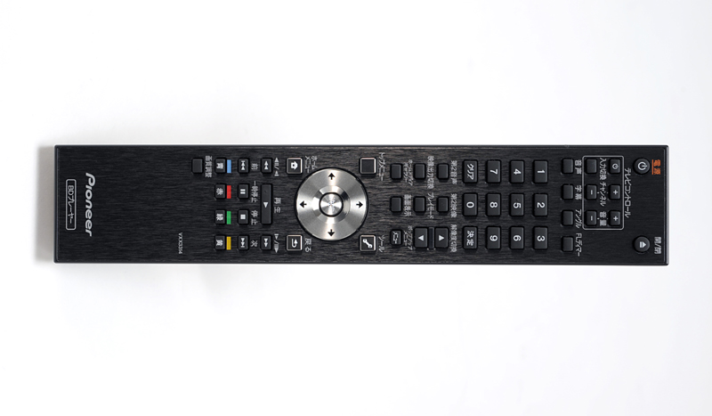 BDP-LX52のリモコン。ヘアライン仕上げで高級感を演出している