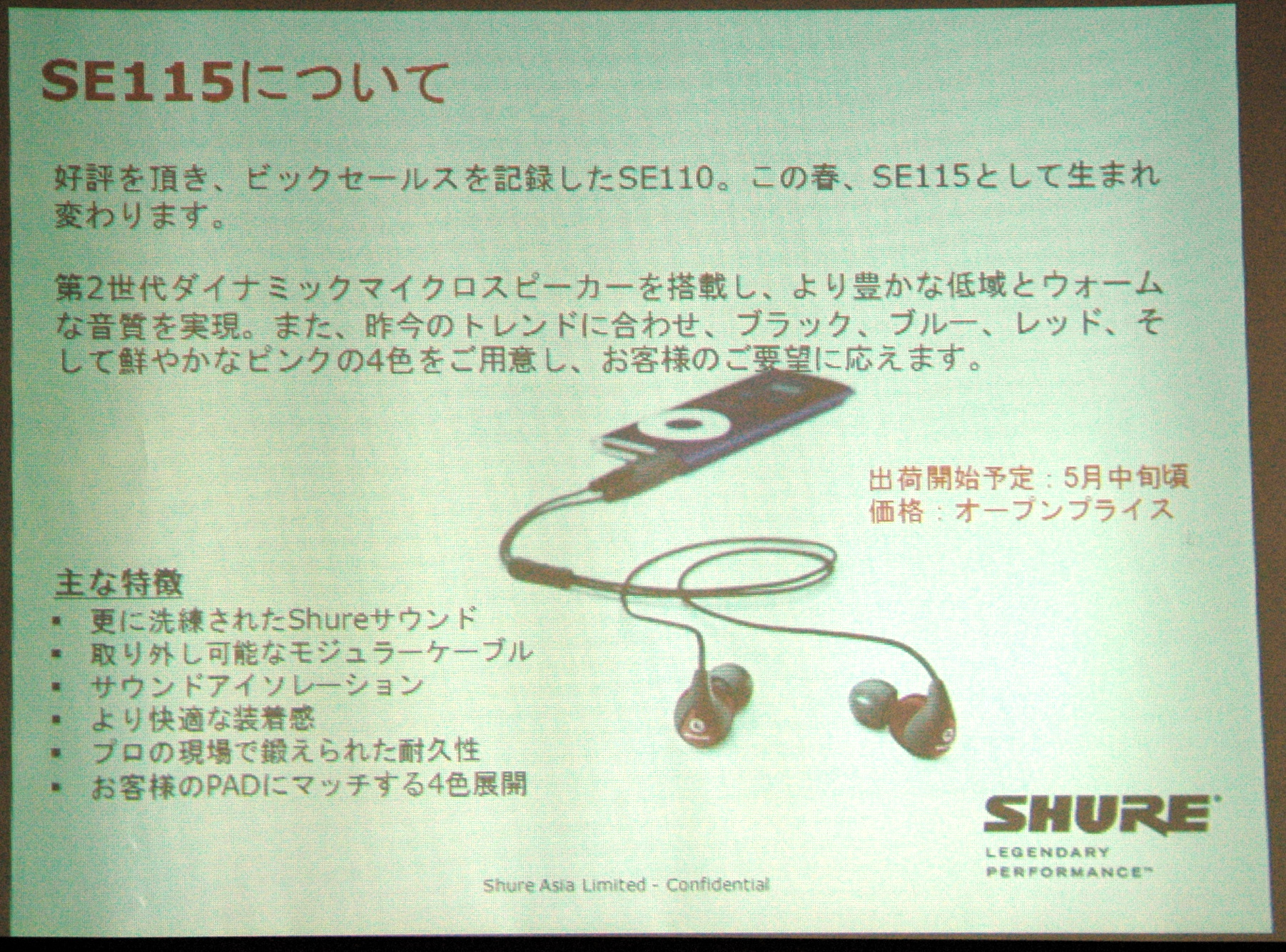 SHUREのカナル型イヤホン「SE115」正式発表 − 4色カラバリ/新ダイナミック型ドライバー搭載