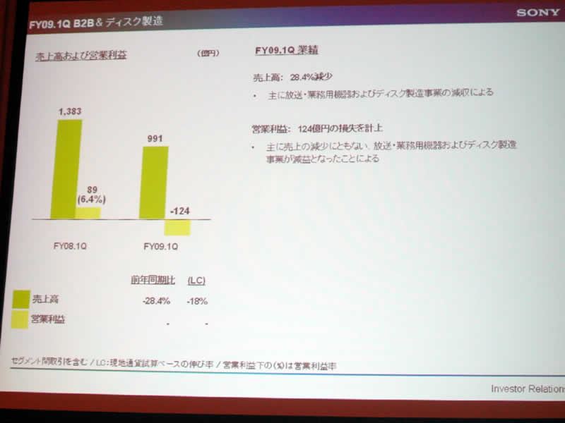 放送業界自体の不況もありB2Bとディスク分野の売上高は前年同期比で28.4%減少