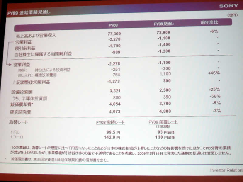 ソニー、09年1Q連結業績を発表 - 調整ベースでは233億円の営業利益