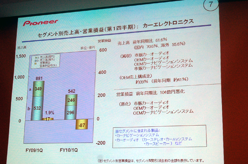 カーエレクトロニクス部門はカーオーディオ販売不振などから赤字へ