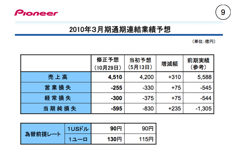 - パイオニア、1Q連結業績説明会を開催 − 当初計画より改善するも慎重な姿勢は崩さず 2009/08/06