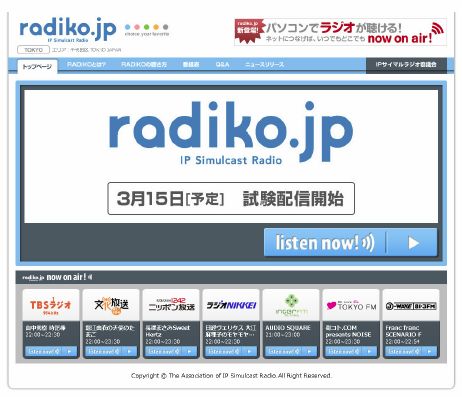 - radiko、東日本大震災の復興支援サイトを開設 − 被災地区の放送を全国に配信 2011/04/27