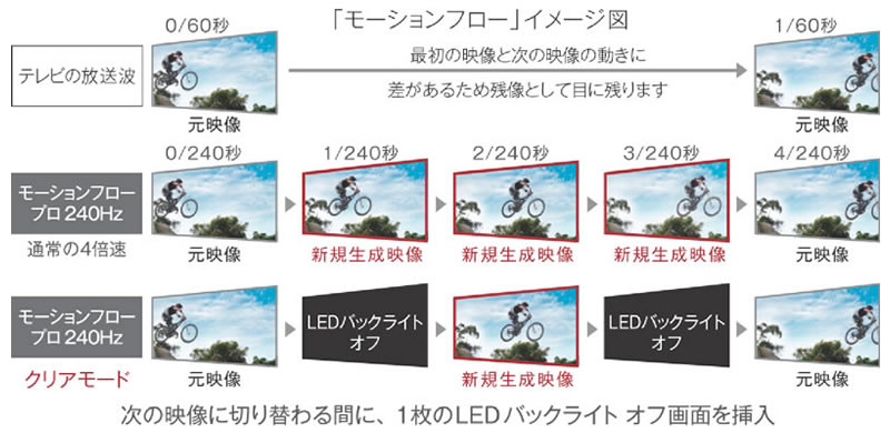 本機と「HX800シリーズ」に搭載されている「モーションフロープロ240Hz」の方式