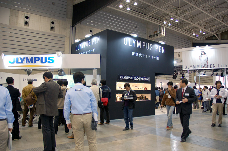 オリンパスイメージングのブース。宮崎あおいさんの「PEN」の垂れ幕が目を引く