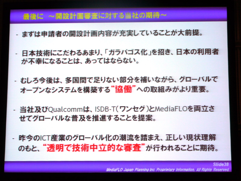 新モバイル放送の免許取得争い、いよいよ終盤へ − メディアフローが優位性をアピール