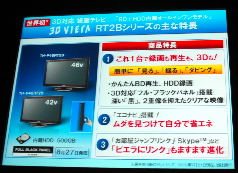 【更新】パナソニック、HDD/BD内蔵“3D VIERA”RT2Bシリーズ − Blu-ray 3D再生にも対応