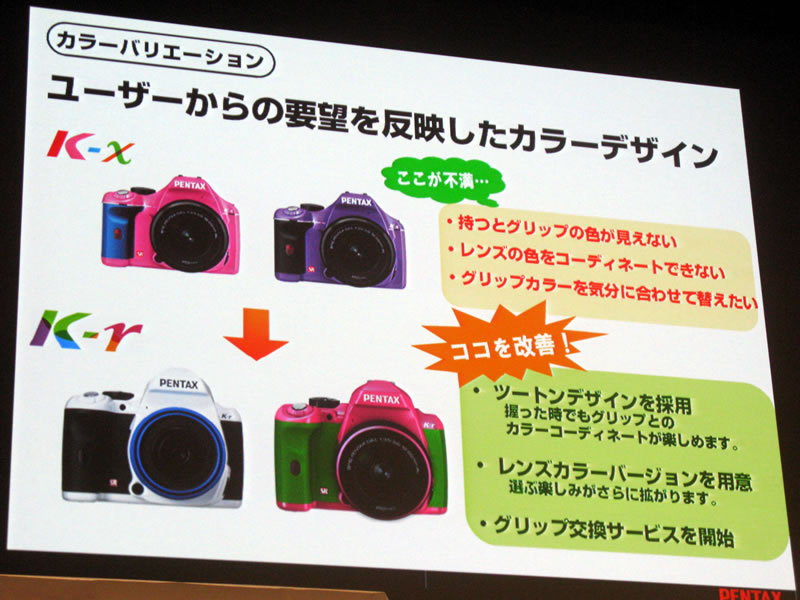 「K-x」で寄せられたユーザーからの要望に応える形でカラーデザインの改良を行った