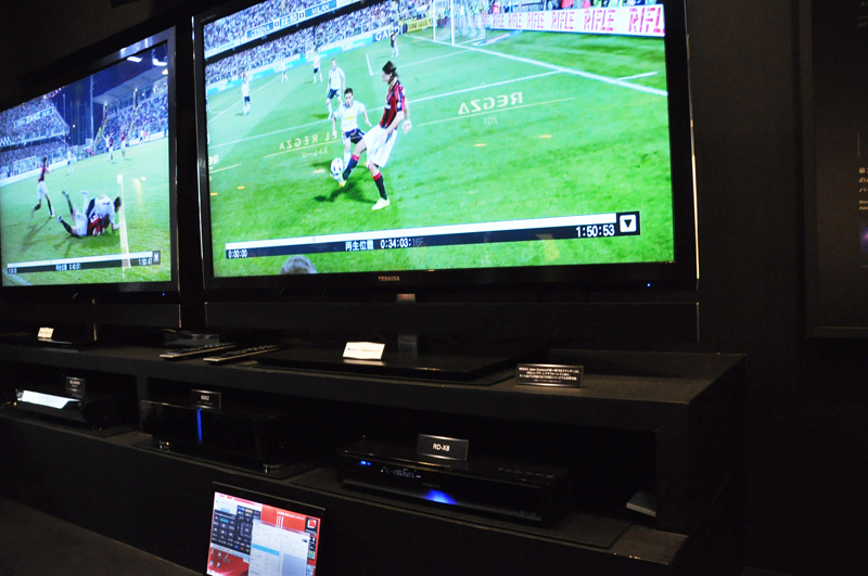 CEATEC会場に設けられた「Regza Apps Connect」のデモコーナー。CELL REGZAとRDシリーズでデモを行っている