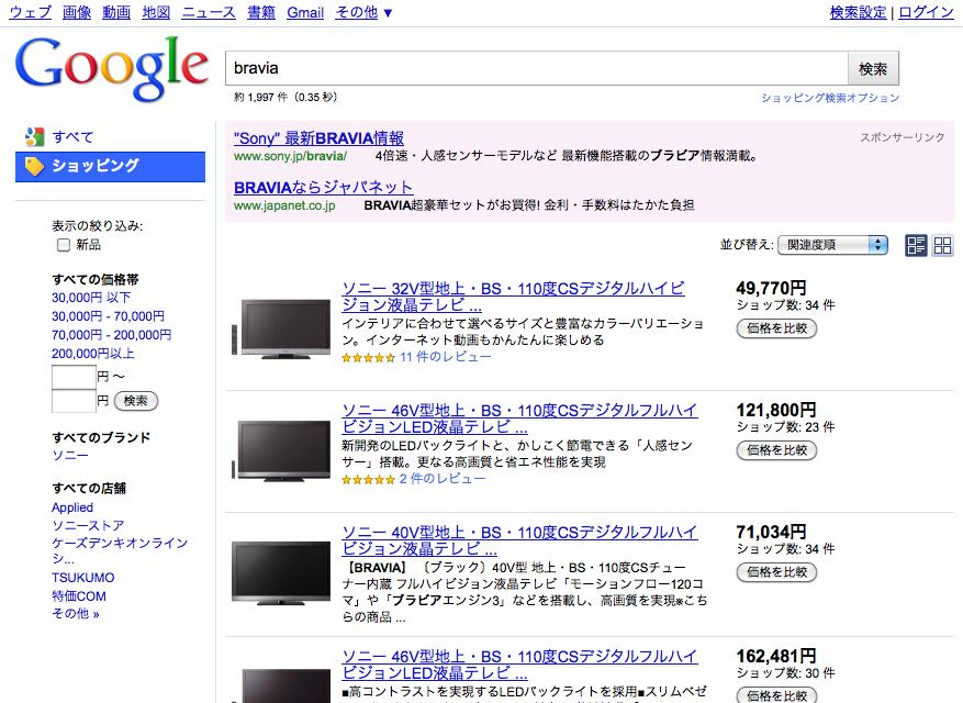 - 「Google ショッピング」が機能強化 − 絞り込み検索などが容易に 2010/12/20