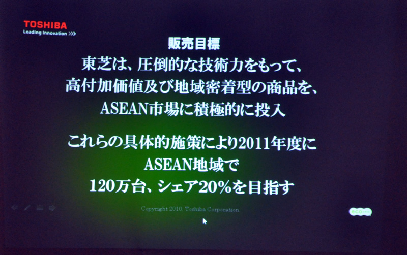 「2011年度にASEAN地域で120万台、20%シェア」という目標が掲げられた