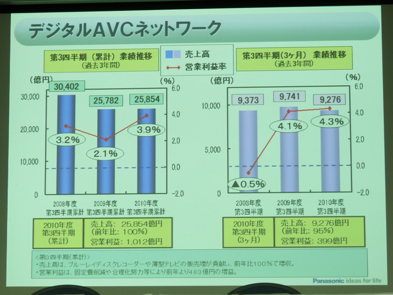 パナソニック、2010年度3Q連結業績決算を発表 − 純利益が黒字転換し1147億円を計上