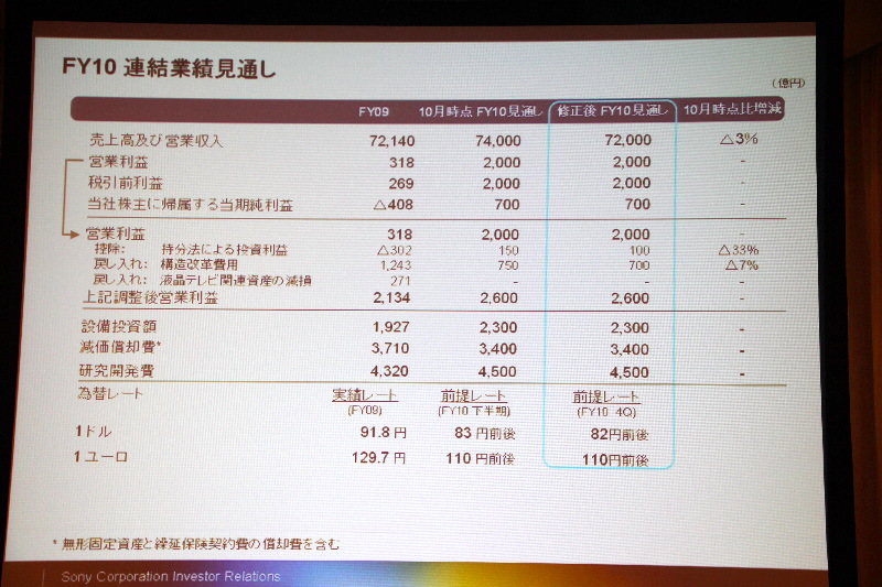 - ソニー、2010年度第2四半期の連結業績を発表 - ゲーム/PCの貢献などで687億円の利益計上【情報追加】 2010/10/29