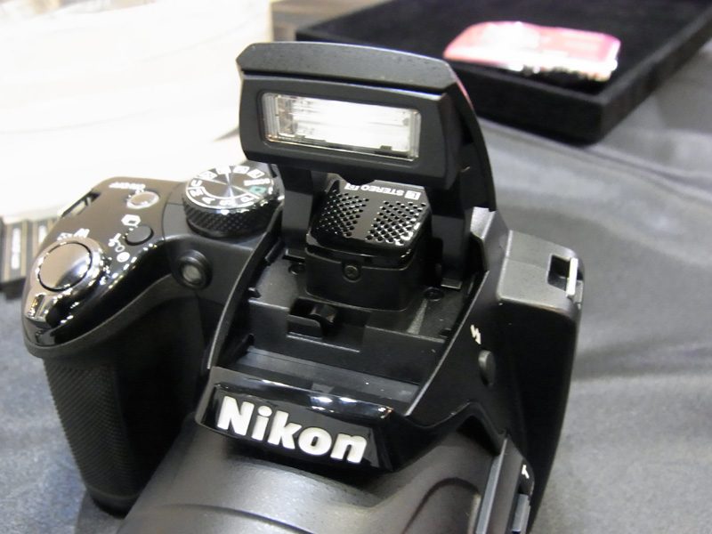 本体トップにポップアップフラッシュとマイクを搭載。ステレオ音声付の動画が記録できる