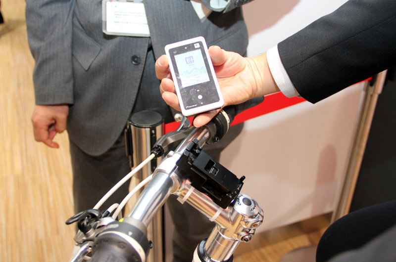 ハンドルの真ん中にクレードルが設けられ、ここにデバイスを設置する