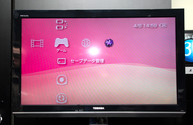 「オートポータブルズーム」でPSPのメニュー画面を表示したところ。全画面で表示されている