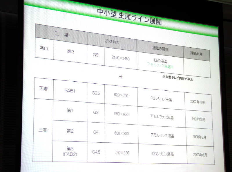 同社の、今後の中小型液晶パネルの生産ライン展開