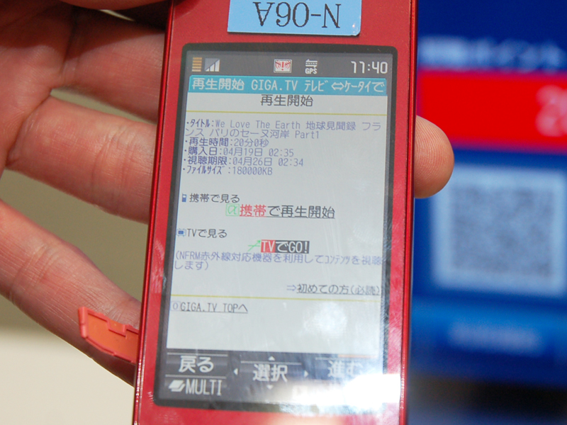 購入したコンテンツは、「携帯で再生開始」または「TVへGO」を選択することができる。