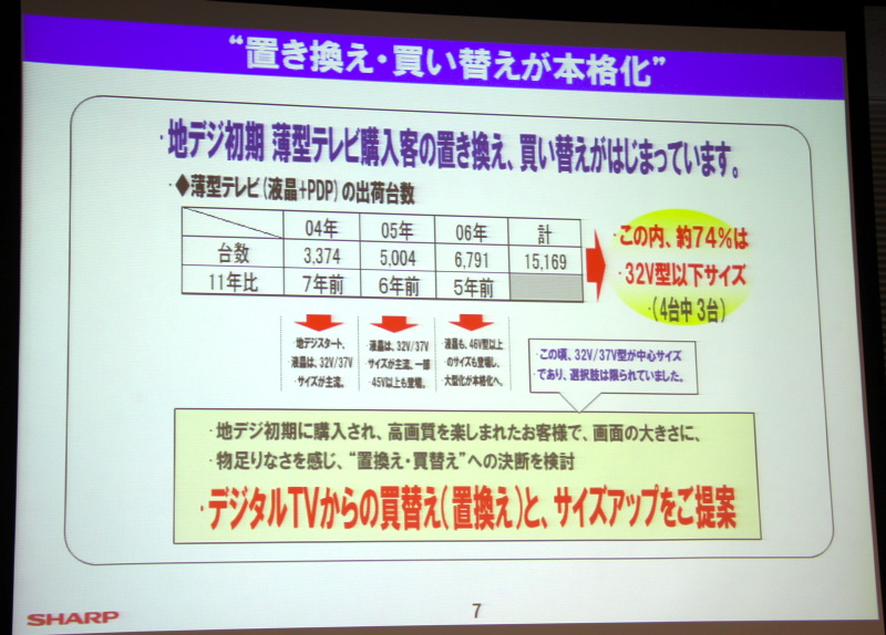 シャープ、地デジ移行後の薄型テレビ事業は「買い替え・置き換え」需要を喚起
