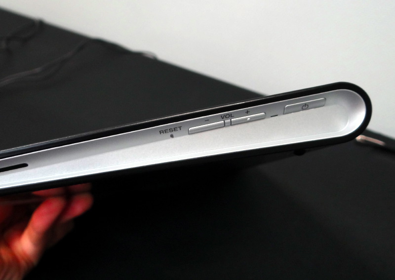 右側面には電源ボタン、ボリュームのアップダウンボタンを備える