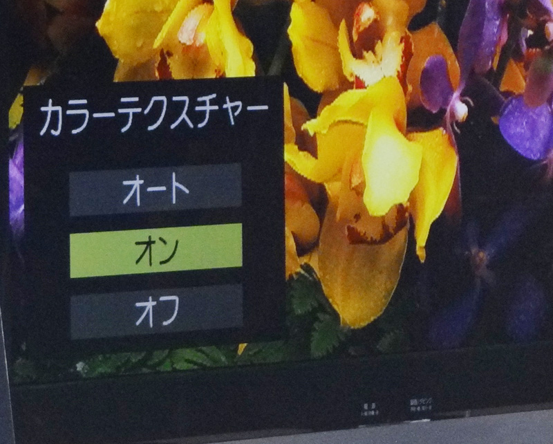 「カラーテクスチャー復元」はオート/オン/オフから選択可能