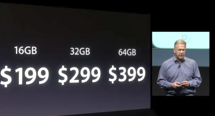iPhone 4Sの、米国内での販売価格(2年契約時)