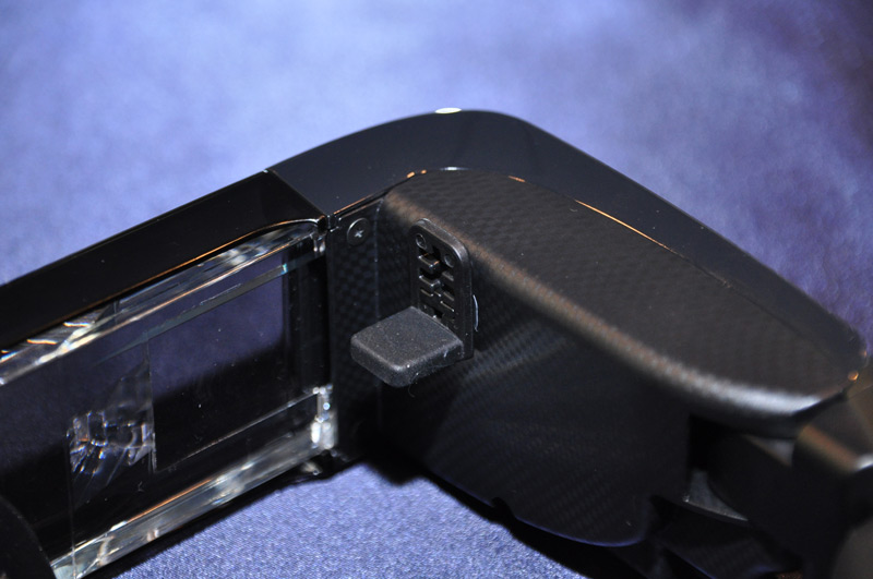 メガネをかけた状態でも快適な付け心地を実現するため、内側に高さ調整が可能なメガネフックが取り付けられる