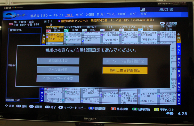 こちらも“ハイグレド“シリーズ”と同じ機能「最新上書き録画」。EPG画面から設定する