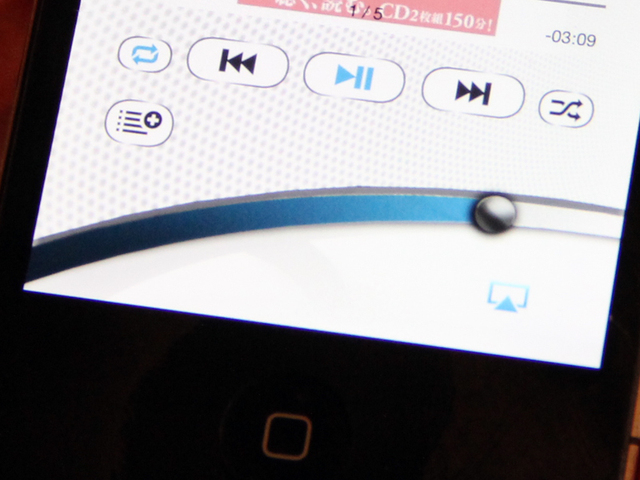 青い流線形の音量調整バーが特徴的