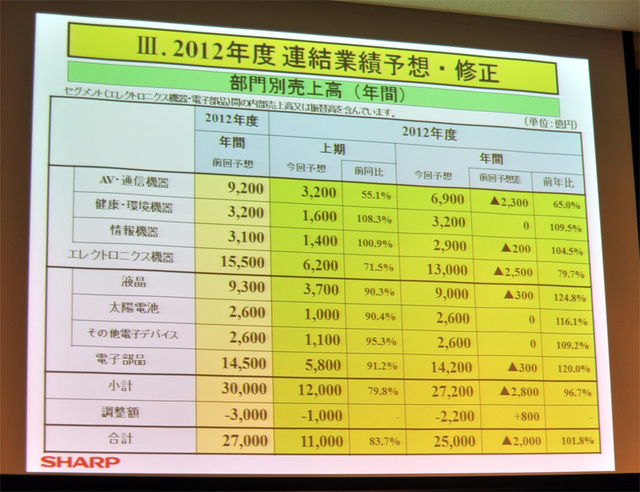 【情報追加】シャープ、12年度の通期連結業績予想を修正 − 純損益は2,500億円の赤字を見込む