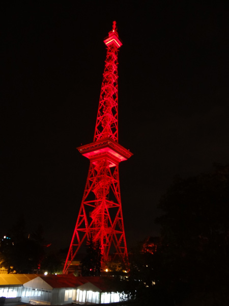 ラジオ塔はIFAの開催期間中、テーマカラーの赤色にライトアップされる