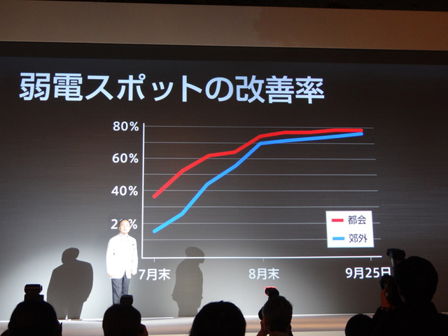 プラチナバンドの普及により弱電スポットが急速に改善されているというデータを紹介