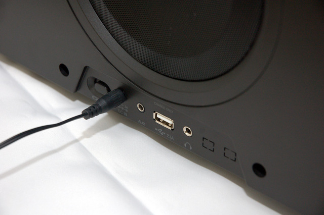 ヘッドホン出力や3.5mmステレオミニジャック、ヘッドホン出力、充電用USB端子などを備える