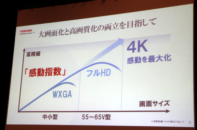 感動指数は解像度が足りないと落ちてしまうと指摘。4Kであれば感動を最大化できるという
