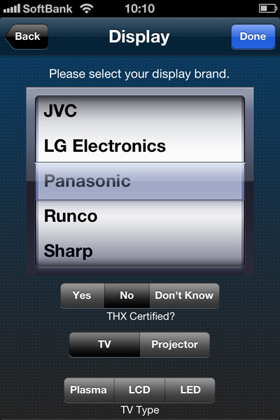 ディスプレイ機器の選択画面。ユーザー環境ごとに最適なセッティングを提供する