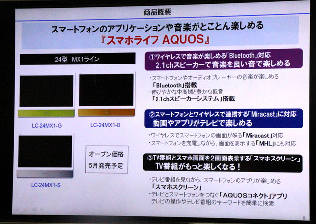 シャープ、Miracast/Bluetoothでスマホ連携する「スマホライフ AQUOS」
