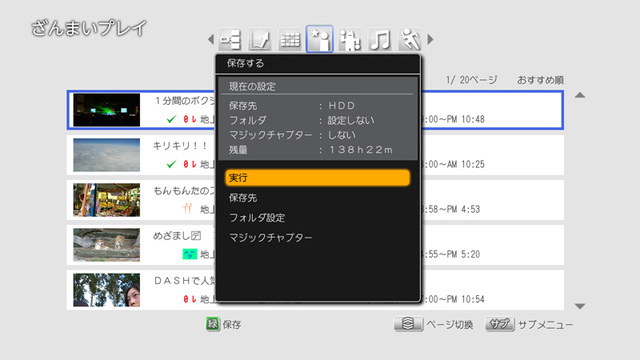 ざんまいプレイのメニューからダビング保存を実行することもできる