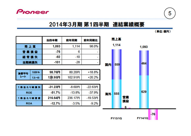 パイオニア、'13年度1Qは純損失101億円 − 市販カーナビや光ディスクドライブ製品が減少