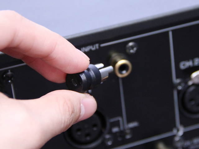 バランス出力使用時、アンバランス入力端子に差し込むショートピンが付属する