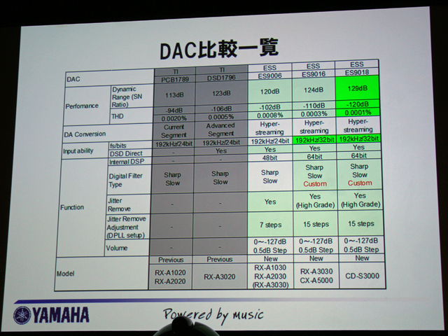 ヤマハAVアンプの搭載DAC比較一覧表