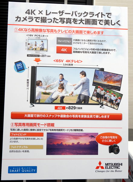 4Kとレーザーバックライトにより、写真を綺麗に見られると訴求する