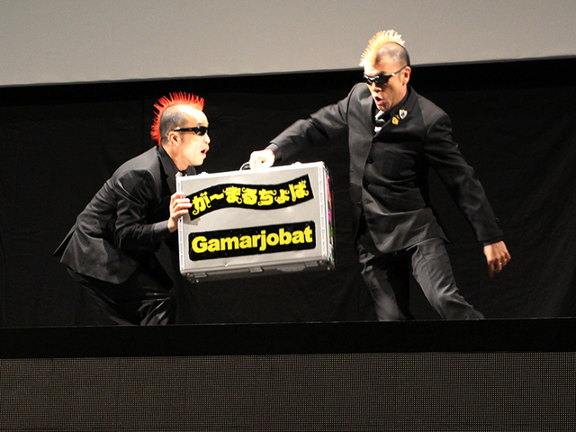 が〜まるちょば。おなじみのアタッシュケースのまわりをまわるパフォーマンス