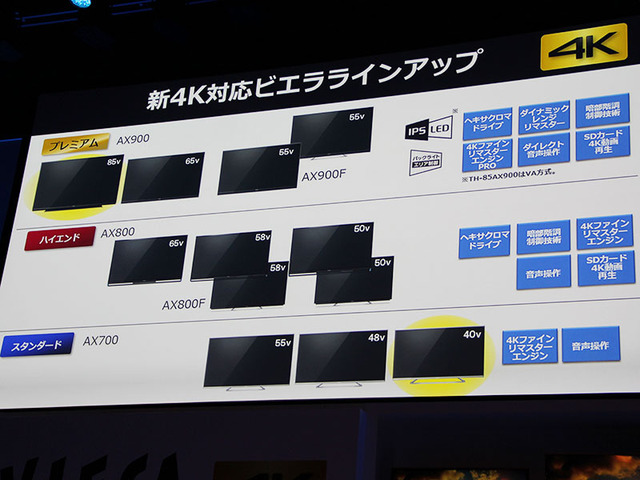 パナソニックの4Kビエララインナップは3シリーズ7サイズ12機種に