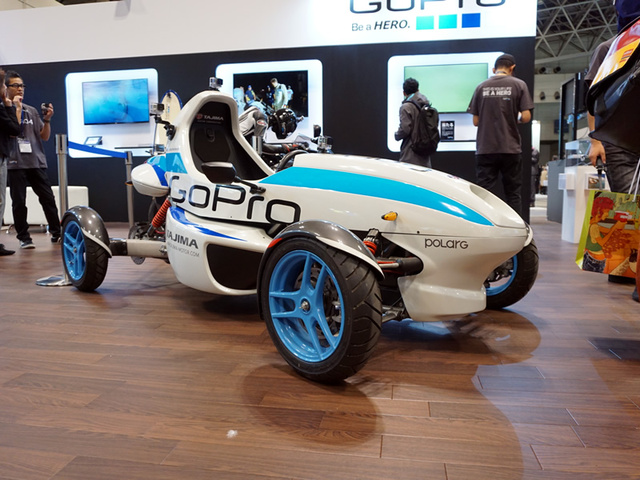 「HERO4」を始めとした各モデルを装着した車の展示も