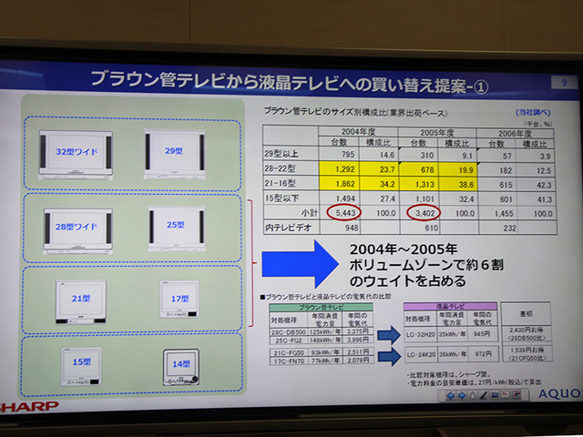 シャープによれば、2004〜2006年でブラウン管テレビは1千万台出荷していた