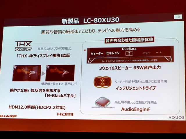 シャープ、8K解像度を実現した “AQUOS 4K NEXT” 「80XU30」