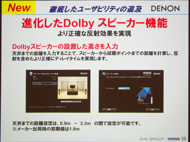 イネーブルドスピーカーを設置する高さを入力する設定項目が追加。より精度の高い補正が可能となった