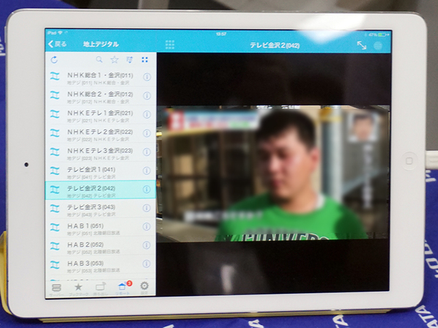 iPadでのテレビ番組再生デモ。東京の会場でデモが実施されたがチャンネル一覧には関東キー局ではない放送局が並んでいる