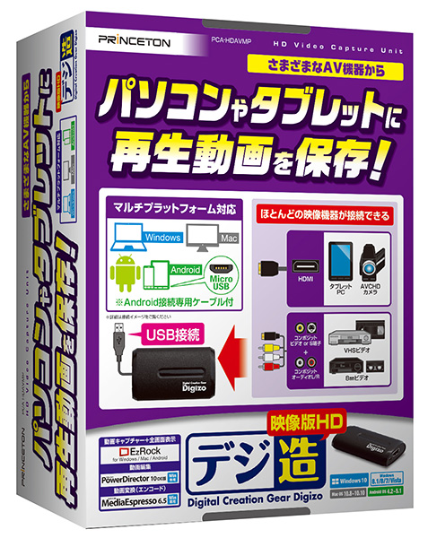 プリンストン、8mm/AVCHDビデオ映像をPC/スマホに取り込める“デジ造映像版HD”