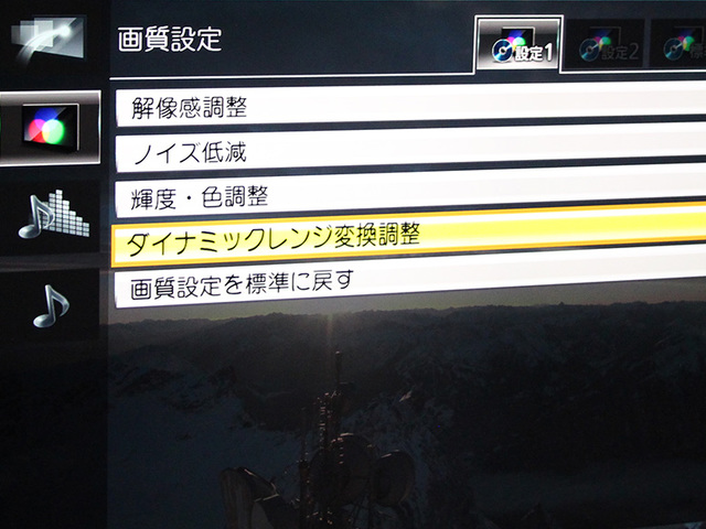 画質設定メニューの中に、ダイナミックレンジ変換調整を用意